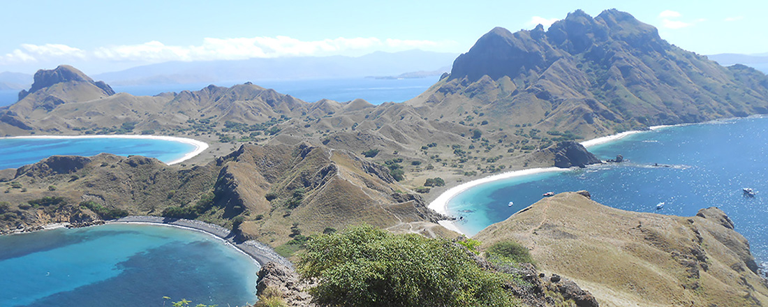 Auf der Padar-Insel erwartet Sie eine der bekanntesten Aussichten Indonesiens: Vom Gipfel der Insel genießen Sie spektakuläre Panoramablicke auf drei verschiedenfarbige Buchten, weiße Sandstrände, steile Berghänge und die umliegenden Inseln der Komodo-Gruppe. Der Anblick ist ikonisch – viele Fotos, Werbekampagnen und Filme zeigen dieses Motiv als Symbol für eine Urlaubsreise zum Komodowaran oder in den Nationalpark.